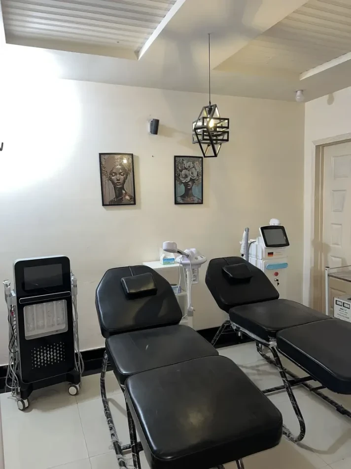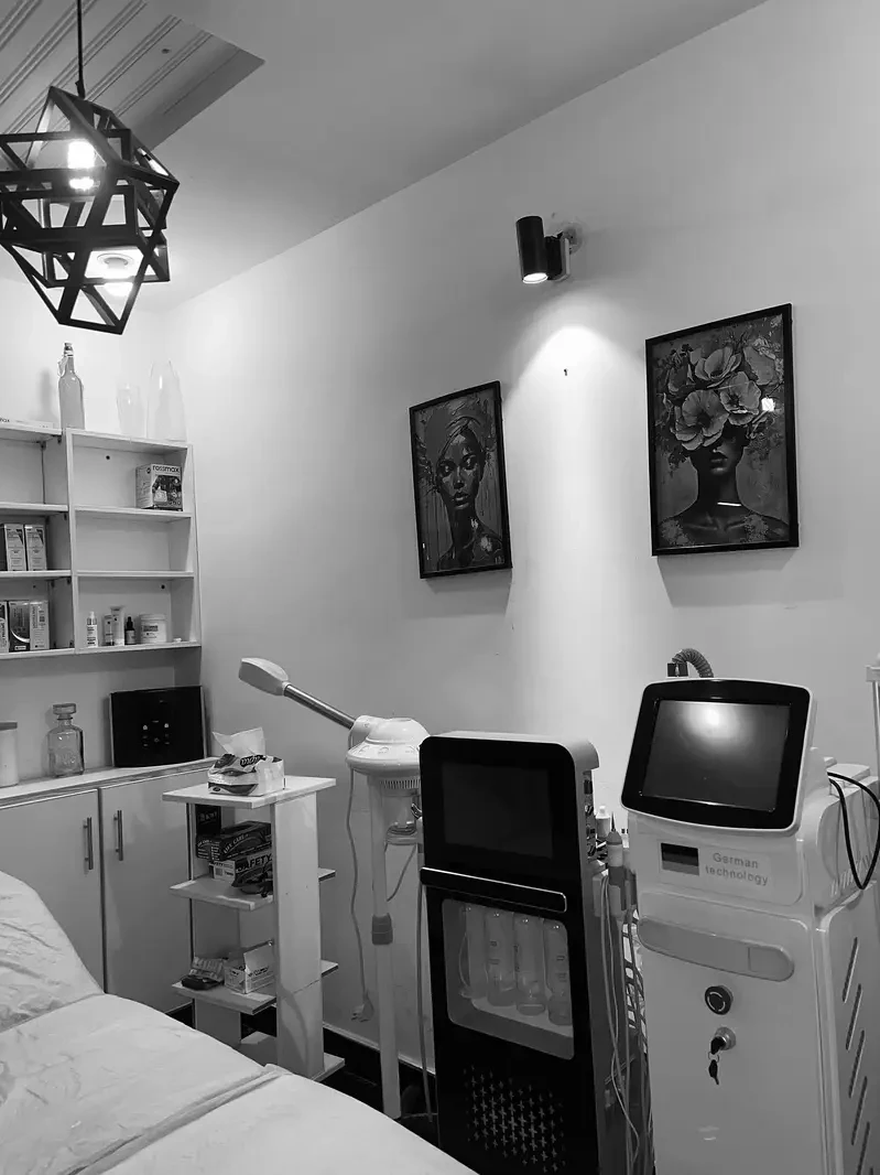 It is equipped with advanced machinery such as a PRP machine, high-quality laser hair removal machine, Picosure laser, tattoo removal system, and a latest 19-in-1 hydrafacial machine. Additionally, the clinic includes tools and products for semi-permanent makeup, lash extensions, microneedling (Dr. Pen), along with complete nail equipment and a variety of chemical peels.