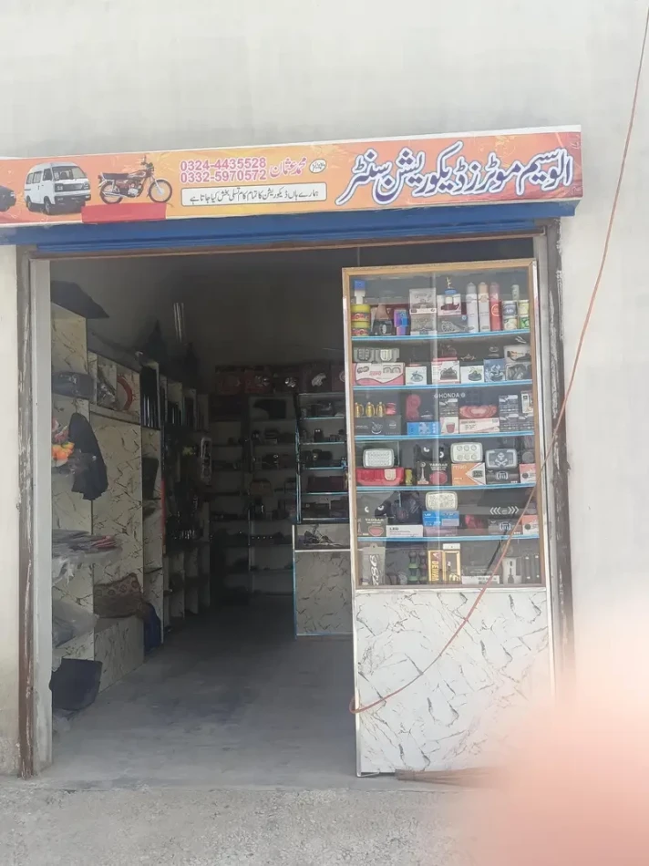 A fully equipped auto decoration parts shop is available for sale in Dullah, Chakwal, offering a great opportunity for entrepreneurs in the automotive accessories sector. The shop specializes in decoration items for motorcycles and cars, providing a variety of products for vehicle customization.