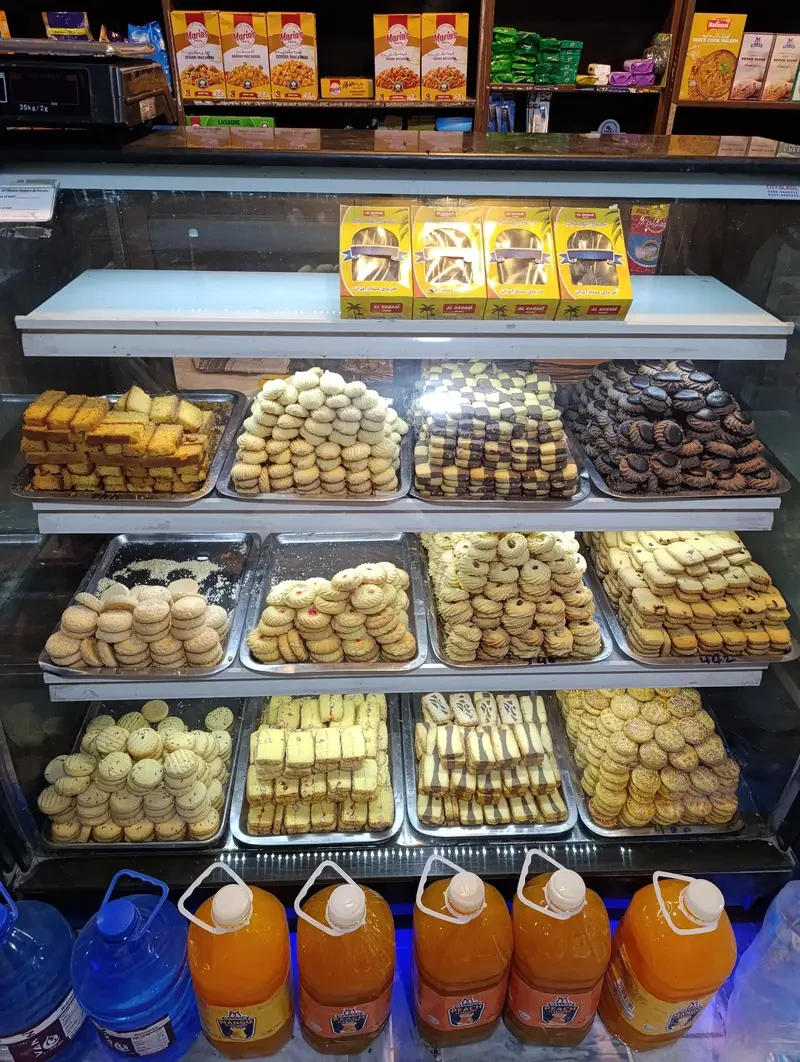 The bakery setup includes bakery and grocery items, along with essential equipment such as a double-door drinks chiller, cake chiller, ice cream freezer, milk inverter freezer, glass counter with shelves, and CCTV cameras installed for security.