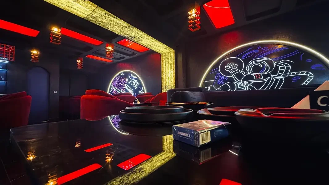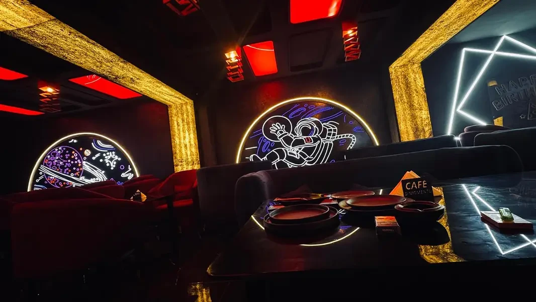 A fully furnished café and restaurant in F-10 Markaz, Islamabad with about 1,600 sq ft of covered space, Dubai-themed interior and all kitchen, bar, music and security systems in place — an ideal turnkey hospitality venture for someone experienced to take over and continue operations.