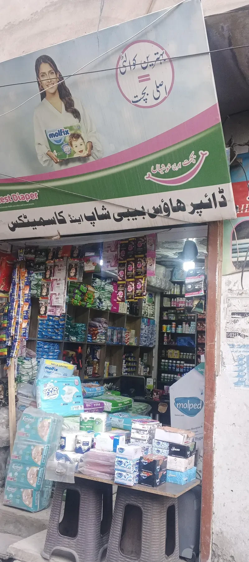 A running retail business selling cosmetics, baby diapers, wipes and tissues is available for sale in Chapper Bazar, Madina Market, Chakwal, offering a built-up shop under a trader’s name with established stock and foot traffic — a ready-to-run opportunity for someone looking to take over an everyday essentials store in a busy local market.