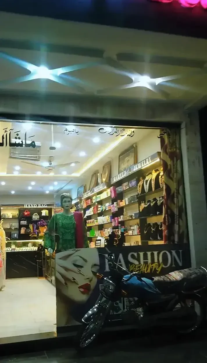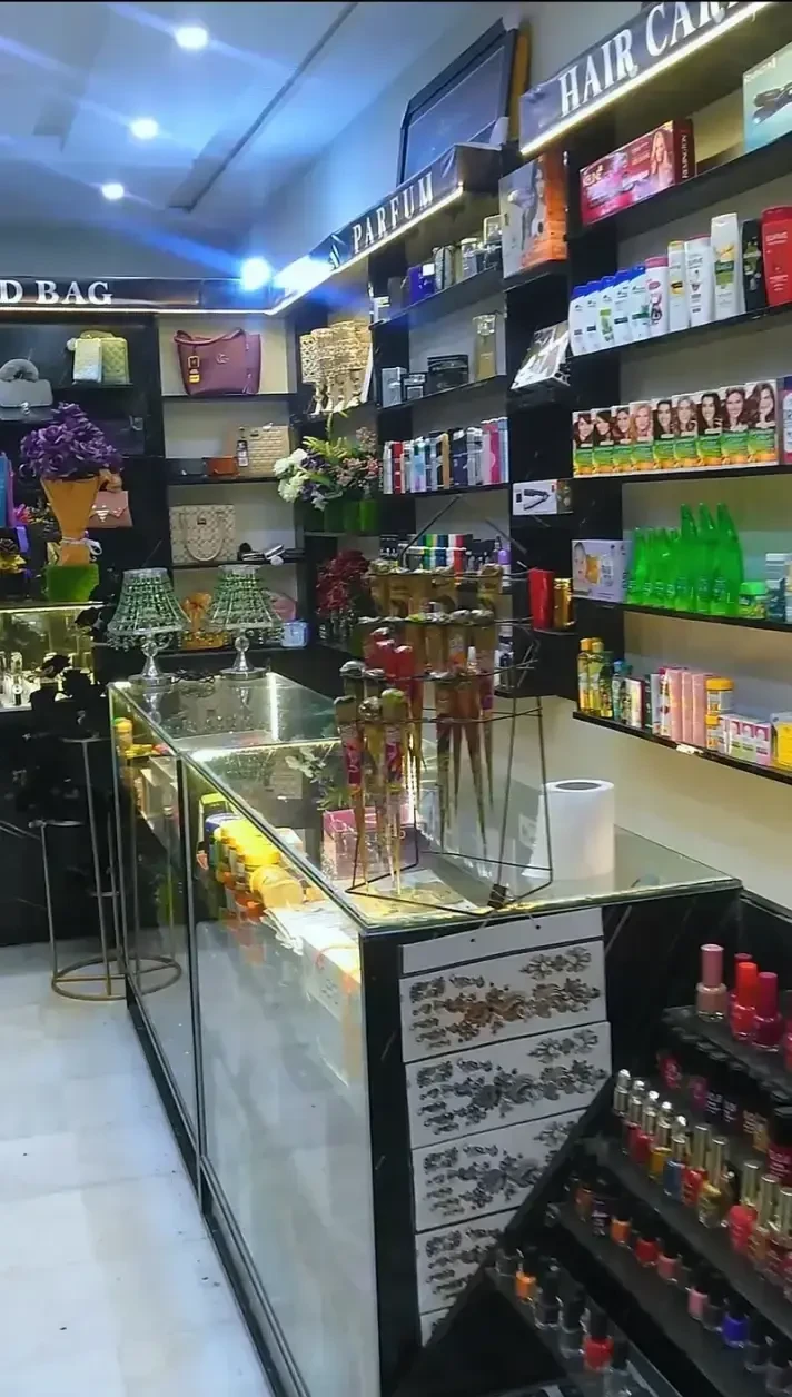 Fashion & beauty retail business for sale in Al Kabir Town, Lahore, featuring a recently established setup (about four months old) with imported products and a complete store layout — including counters, wall mirrors, shelves and a broad inventory of cosmetics, skincare, hair care, accessories, handbags, watches and decorative items — ideal for an entrepreneur seeking a ready-to-operate boutique in a residential-commercial area.