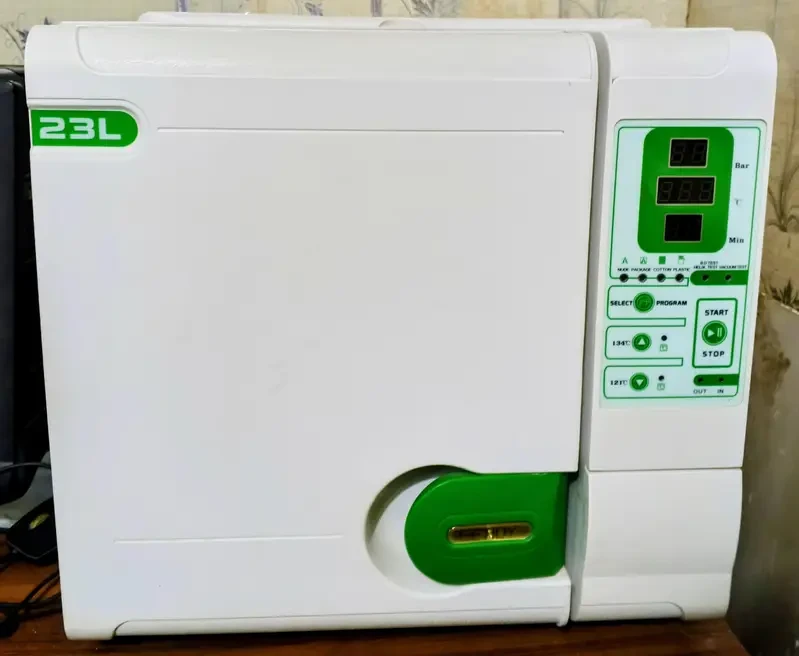 A complete set of high-quality dental equipment is available for sale in Ghanta Ghar Chowk, Multan. The setup includes an Appledent Dental Unit (Model AP033), Getsby 23L Autoclave, Canon X-ray Source, and Bdair Compressor, all in excellent condition and used for only 1.5 years.