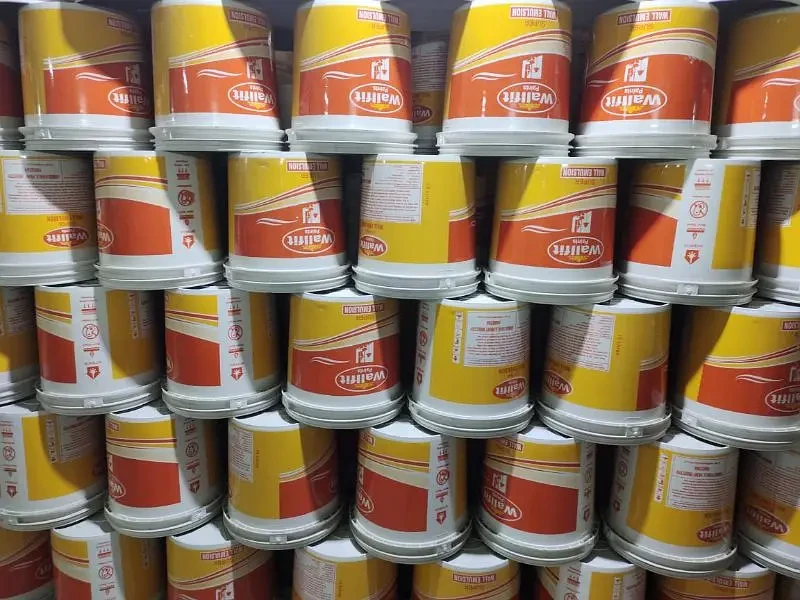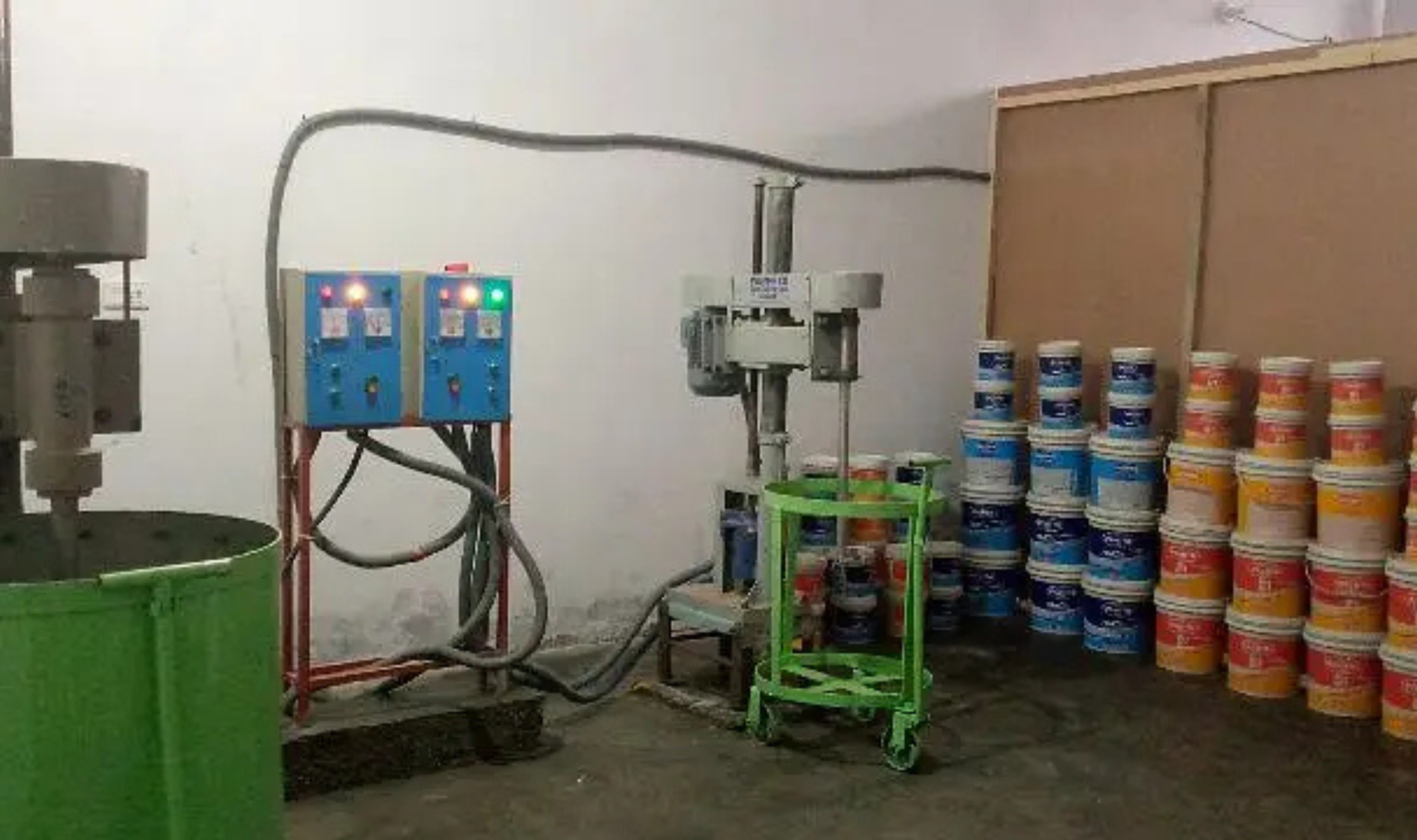 Also included are 2 drums (500-liter capacity each), a trolley, complete wiring panel, 500 distemper buckets, 500 weather shield buckets, 500 distemper gallons, 500 weather shield gallons, and 500 black buckets for wall putty. Comes with 1,200 stickers, 1,000 color shade cards, and a heat gun. Everything is brand new and unused.