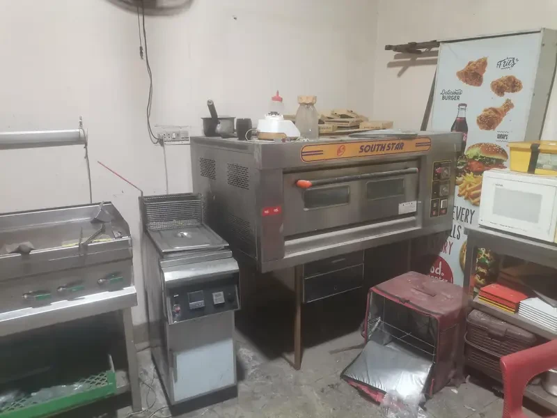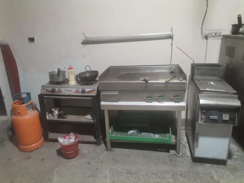 It offers a complete fast food menu, including pizza, burgers, fries, and wraps, with all necessary equipment available. The shop rent is Rs 33,000 per month, and the average electricity bill ranges from Rs 8,000 to Rs 10,000. Interested buyers can also consider a 50/50 partnership option. Visit the location before finalizing the deal.