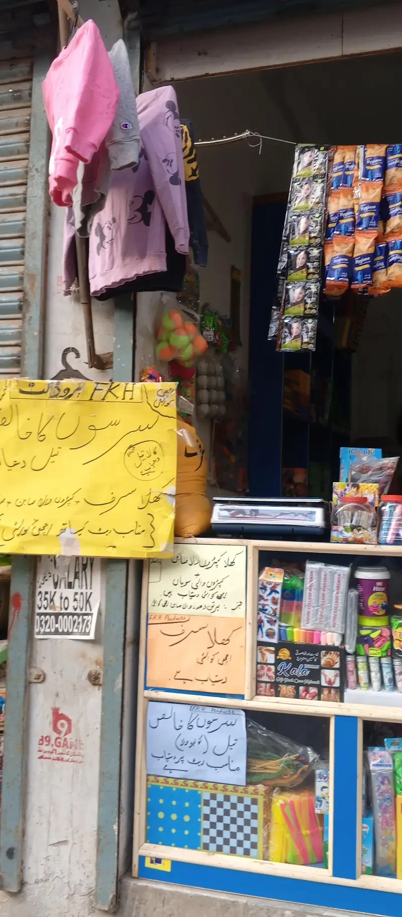 Well-established grocery store for sale on Shah Kamal Road, Lahore, offering a fully operational retail business with good location visibility and daily customer flow.