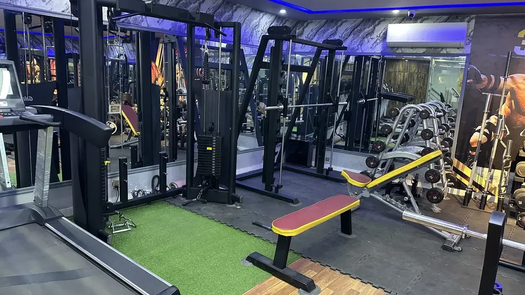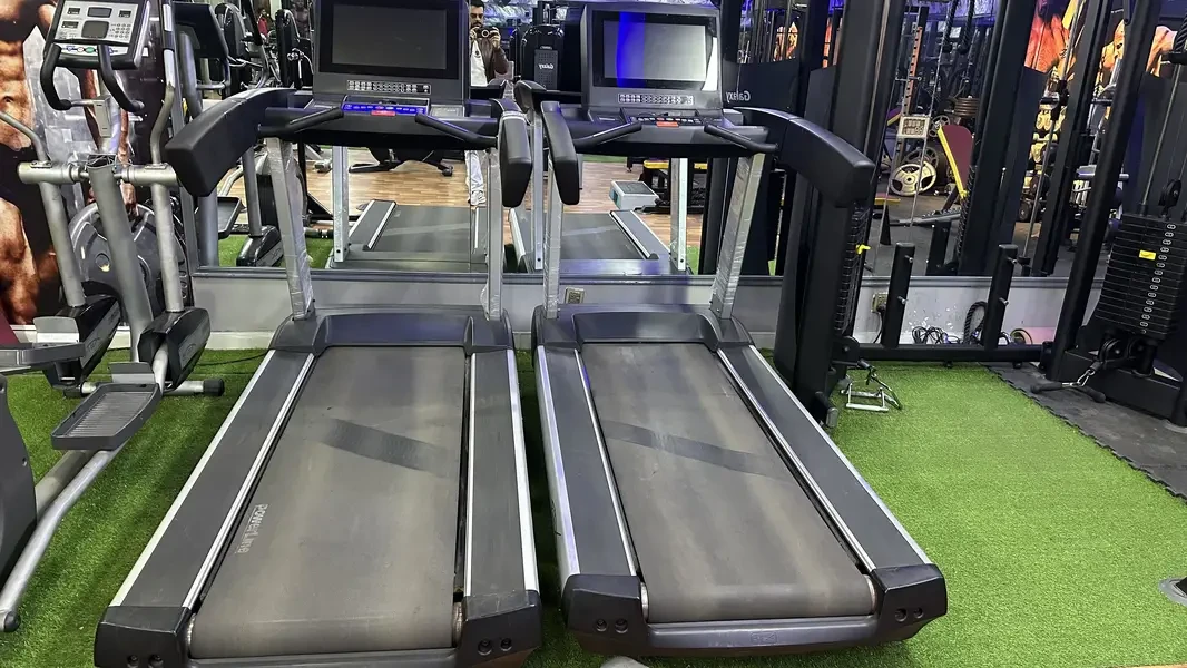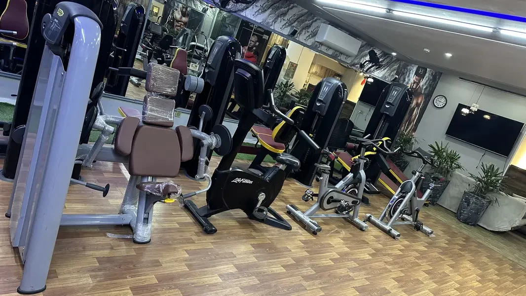 A fully running gym setup is available for sale on Main Broadway, DHA Phase 8, Lahore, featuring neat and clean imported machinery (Korien), two 2-ton air conditioners.