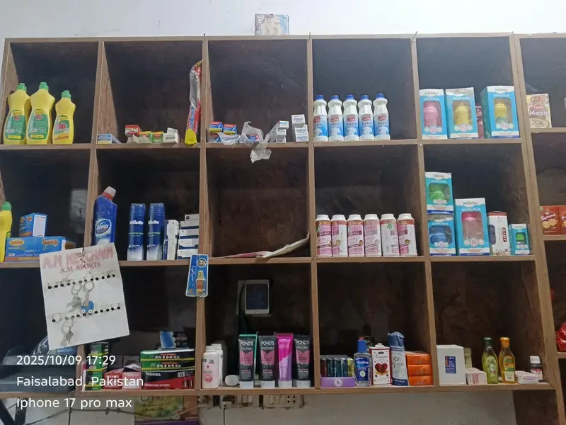 A fully stocked Karyana store is available for sale on Noor Pur Road near Umar Block, Madina Mart, Faisalabad. All items are fresh and in excellent condition. Buyers can either purchase the complete setup with furniture and continue running the store at the same location (shop can be given on rent) or buy only the stock if desired.