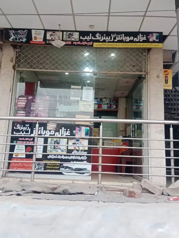 Mobile shop for sale in a good location in Allama Iqbal Town – Kashmir Block, Lahore, featuring a ready‑to‑operate setup with mobile accessories, repair services offered, and support for Easypaisa/JazzCash transactions — perfect for an entrepreneur or retailer seeking an established business with responsive daily customers and minimal additional investment required.