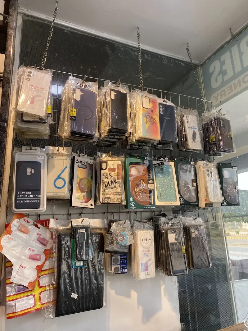 A fully set up mobile accessories business is available for sale on Allama Iqbal Main Boulevard, Lahore, complete with stock and shop setup. The shop includes stock worth around Rs 3 to 3.5 Lac, consisting of all types of mobile accessories such as adapters, chargers, data cables, protectors, covers, pouches, original Apple accessories, computer accessories, keyboards, mouse, speakers, Bluetooth speakers, headphones, earbuds, AirPods, smart watches, power banks, wireless chargers, TV remotes, and many other related items.