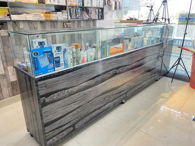 The setup also includes high-quality glass counters: one 2×8 ft 8mm glass counter, one 2×4 ft 8mm glass counter, and a 4×8 ft wall-mounted rack with 24 shelves. All woodwork is made with durable Lasani sheet. This is a great opportunity for anyone looking to start a running accessories business without setup hassle. For more details, please call.
