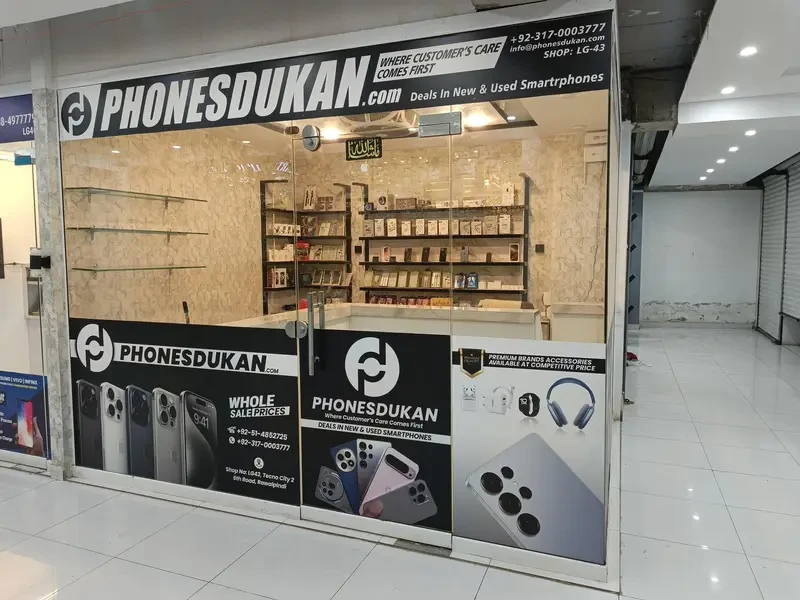 Running mobile shop setup available for sale in a busy Rawalpindi location (Techno City/Golden Mall) with shop rent already established and all necessary fixtures included — an excellent opportunity for someone seeking a ready-to-operate retail business in the mobile and accessories market with immediate customer flow and minimal setup effort required.