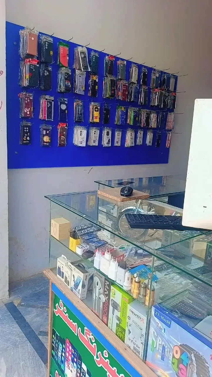 A running mobile shop setup is available for sale in Gulshan Ali Housing Scheme. The shop is approximately 1 marla in size with a low monthly rent of Rs 7,000, located in a good area suitable for mobile business. The sale includes a complete shop setup: mobile accessories stock, mobile repairing tools, a PC with 12 TB hard drive, counters, shelves, and everything needed to start operations immediately.