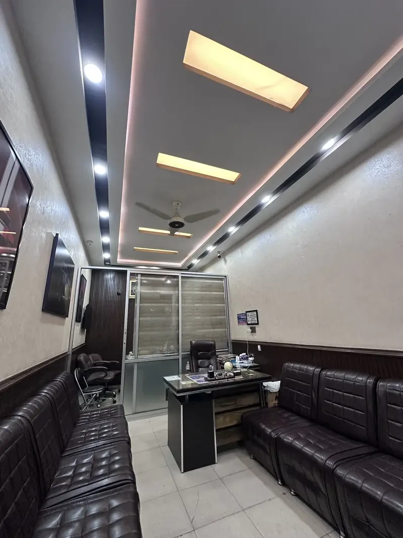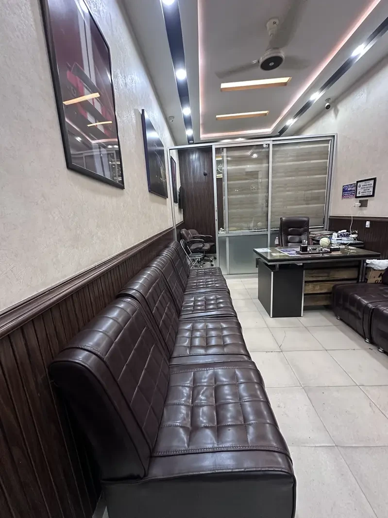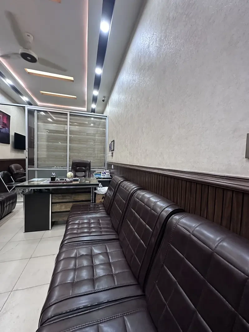 A beautifully designed and fully furnished office/shop is available for sale in Taj Bagh, Lahore. This ready-to-use setup is perfect for anyone looking to start their business immediately without any additional investment. The office features complete furniture including a premium sofa set, executive office desk, and chairs, along with stylish wall paneling, elegant wallpaper, and a modern false ceiling fitted with LED lighting.