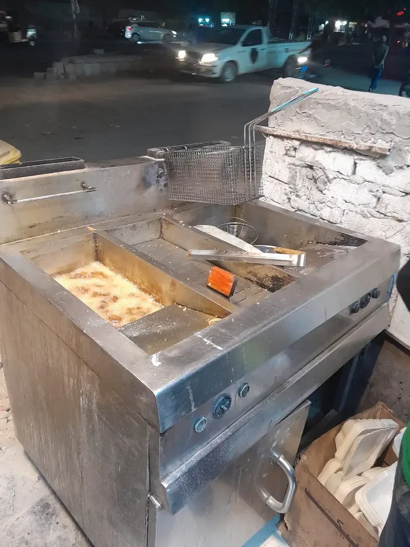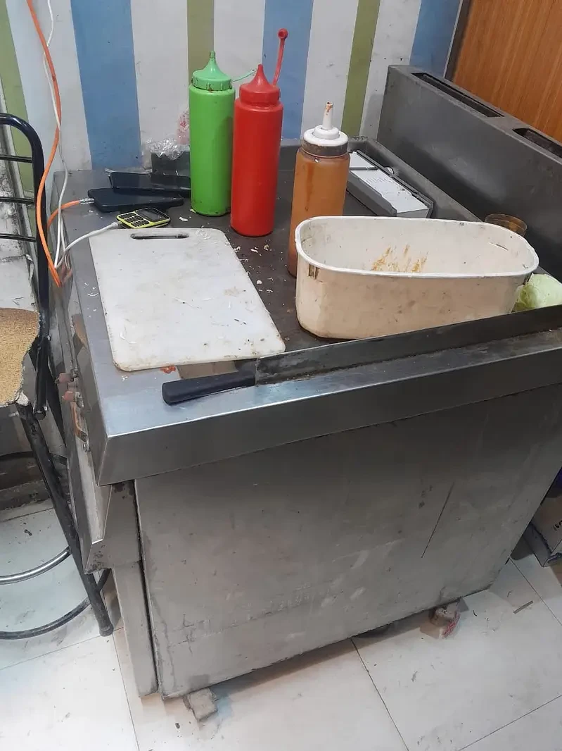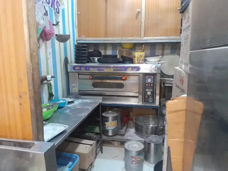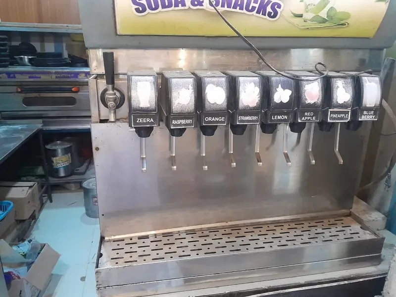 Turnkey fast food and beverage business setup featuring a complete range of well-maintained equipment ready for immediate operation. This turnkey solution includes soda and juice dispensers, soda flavour cylinders, ice crusher, pizza oven, fryers, hot plates, deep freezer, work tables, seating, and full crockery — ideal for fast food, pizza, momos, cafe, or beverage service concepts.