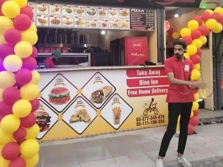 Well-established and fully running fast food restaurant for sale in a high-visibility location in Mughalpura, Lahore, featuring a complete turnkey setup with all equipment and fixtures included.