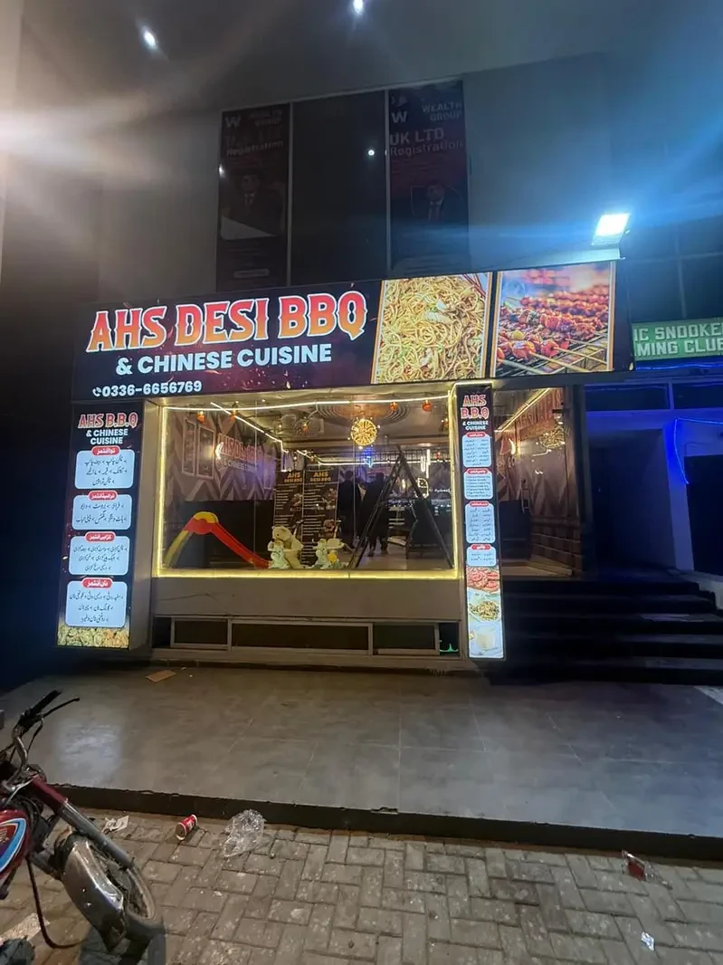 A well-established, fully operational Desi BBQ and Chinese restaurant business in Sialkot is up for sale, including the complete restaurant setup with all kitchen equipment, furniture, interior décor, and counter areas — ready for immediate takeover and running with no extra investment needed.