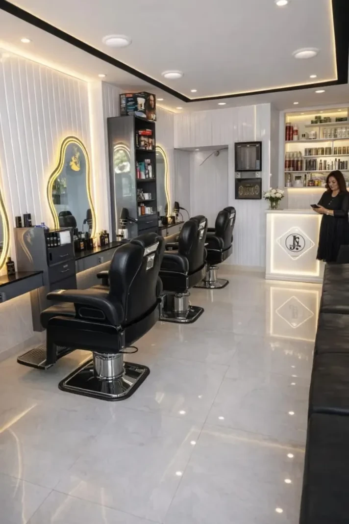 Included in the sale are 2 new hair & makeup chairs and 2 new hair-cutting stools, all in perfect 10/10 condition, along with 1 washing unit with a ceramic sink. Note that the products are not included in the sale and are separate. This is a ready-to-use setup, allowing the buyer to start operations immediately. Interested buyers can contact directly for further details.