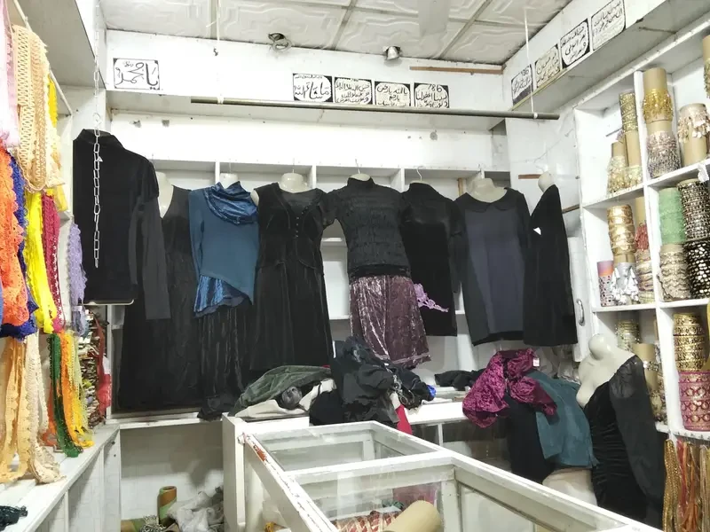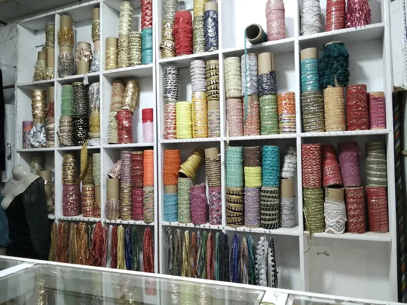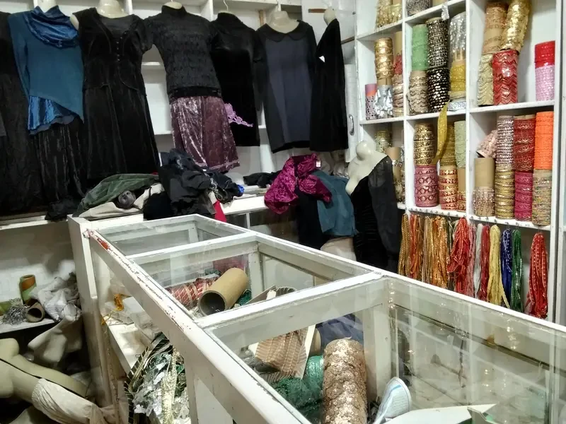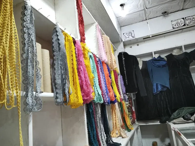 A lace shop setup for sale in Pakki Thatti, Lahore featuring all lace accessories with 2 counters and 5 window display units — ideal for someone wanting a ready-to-use retail business at a demand price of PKR 1.25 lac.