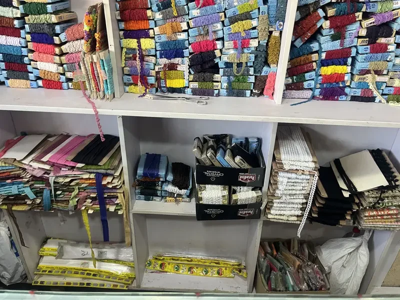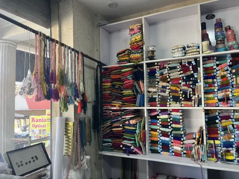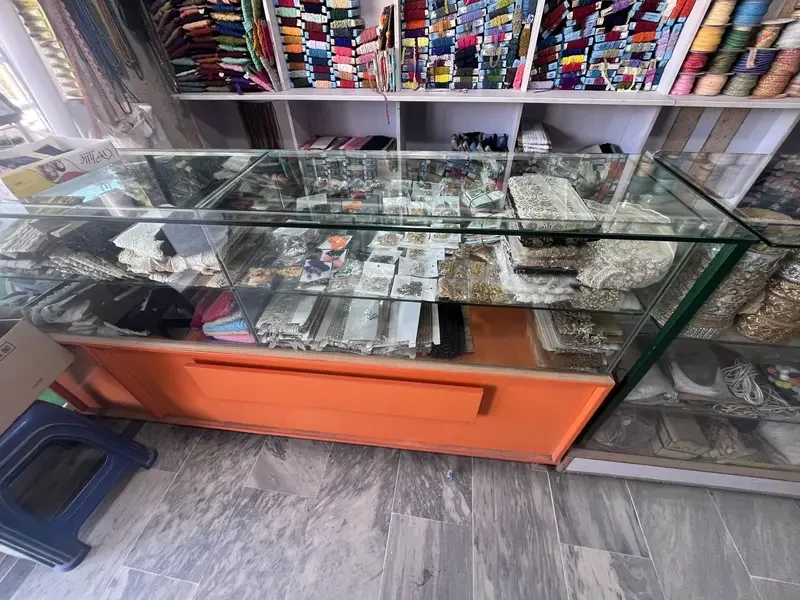 A lace shop for sale on Defence Road, Rawalpindi featuring tailoring materials like laces, buttons and pico machines with a prime location — a great opportunity to own a specialized retail space ready for garment accessories business or expansion.