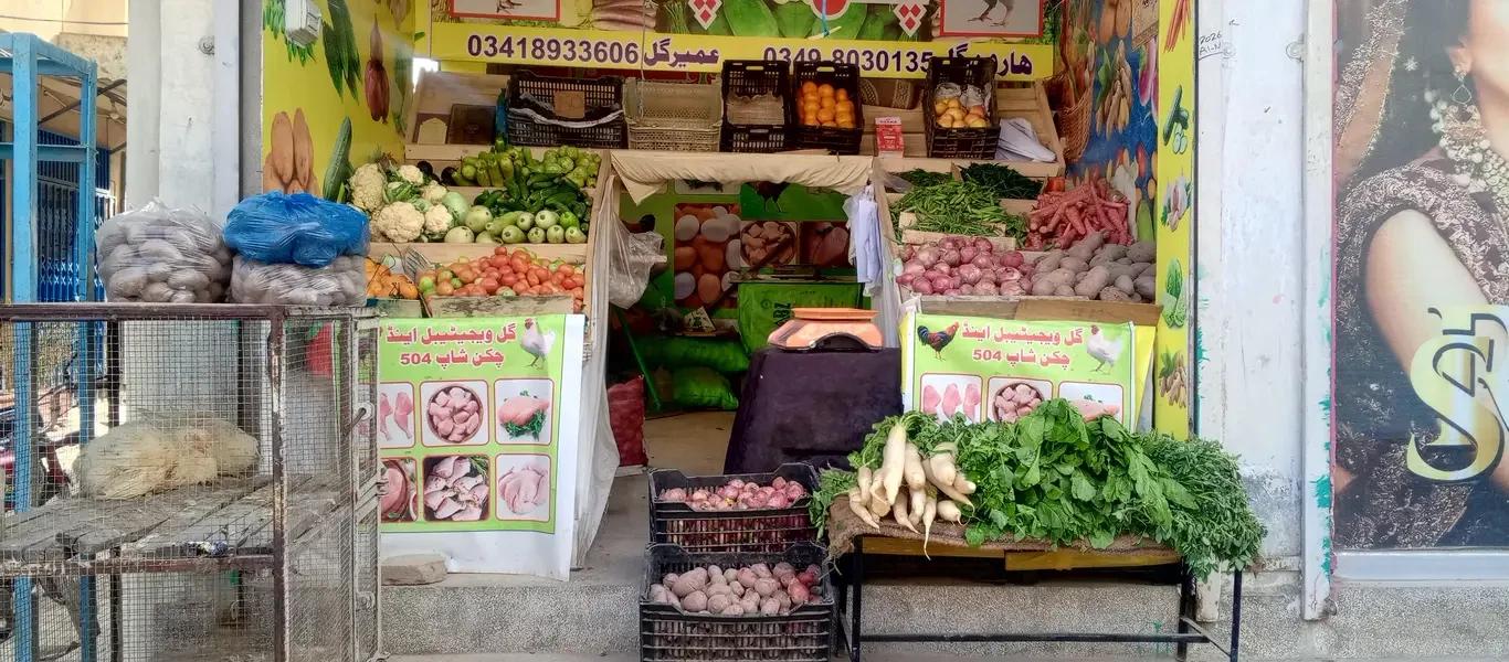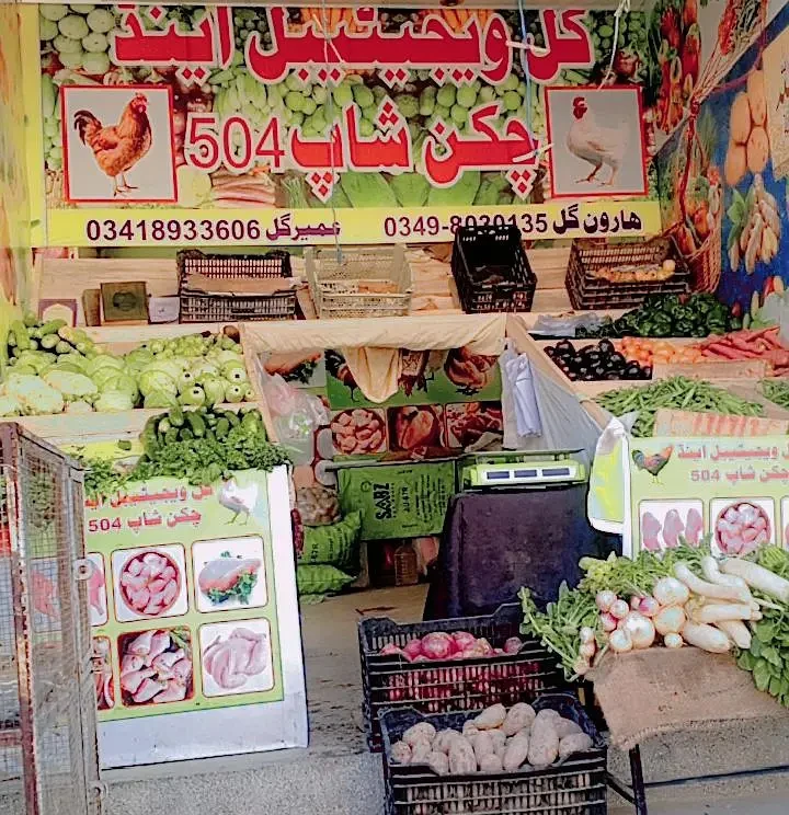 A small roadside business set-up is available for sale on Dhoke Banaras Road, Rawalpindi — it features a double-side shop with one side selling chicken and the other side selling vegetables, offering a ready-to-operate local retail opportunity at an asking price of Rs 3.50 lac.