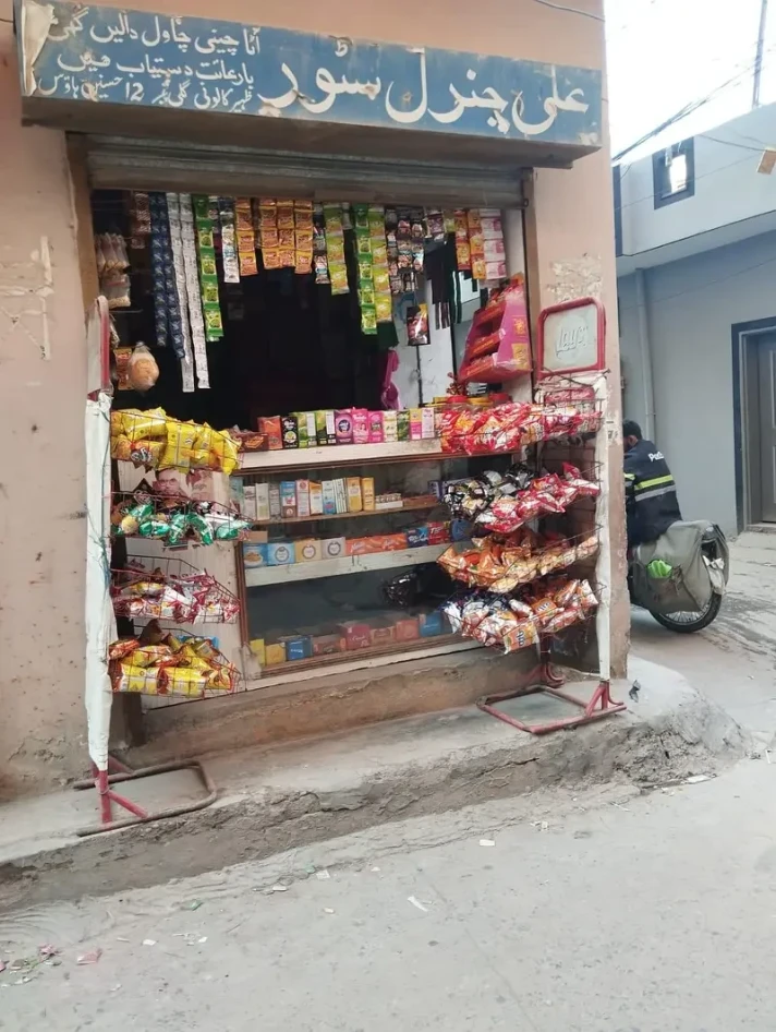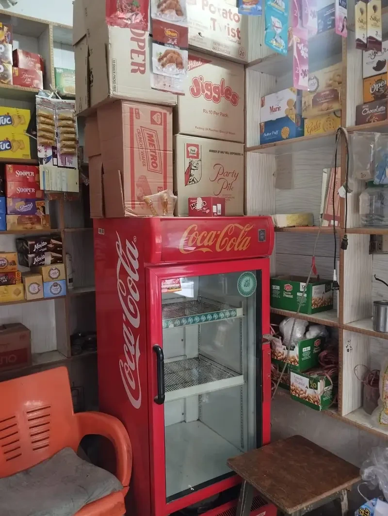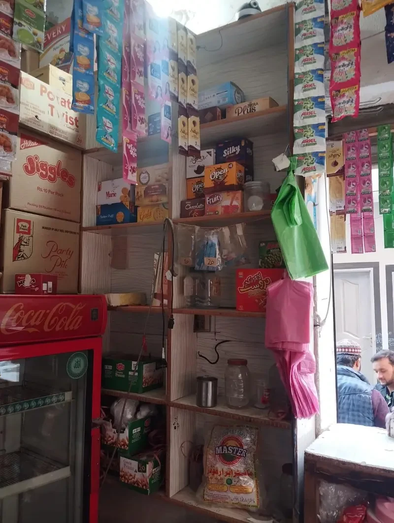 A running general shop for sale in Bakra Mandi, Rawalpindi with a good daily sale and a double-door frontage, including a Coca-Cola chiller and other accessories — a ready-to-operate business in a busy locality priced at PKR 1.20 lac.