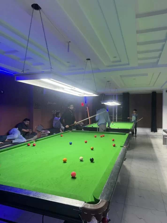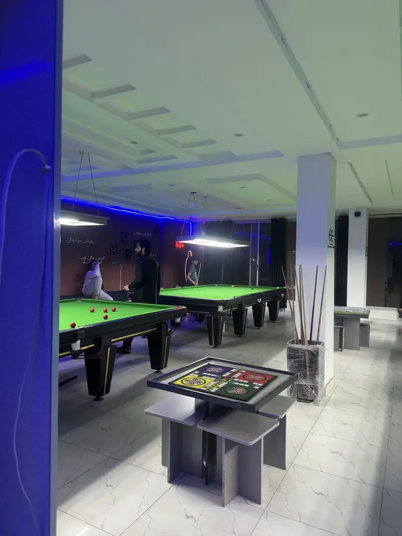 A fully running snooker club is available for sale at a prime location in Commercial Market, Rawalpindi, on the 3rd floor of Albaik Restaurant building near Layers Bakery. The club offers a modern gaming environment and attracts regular customers.