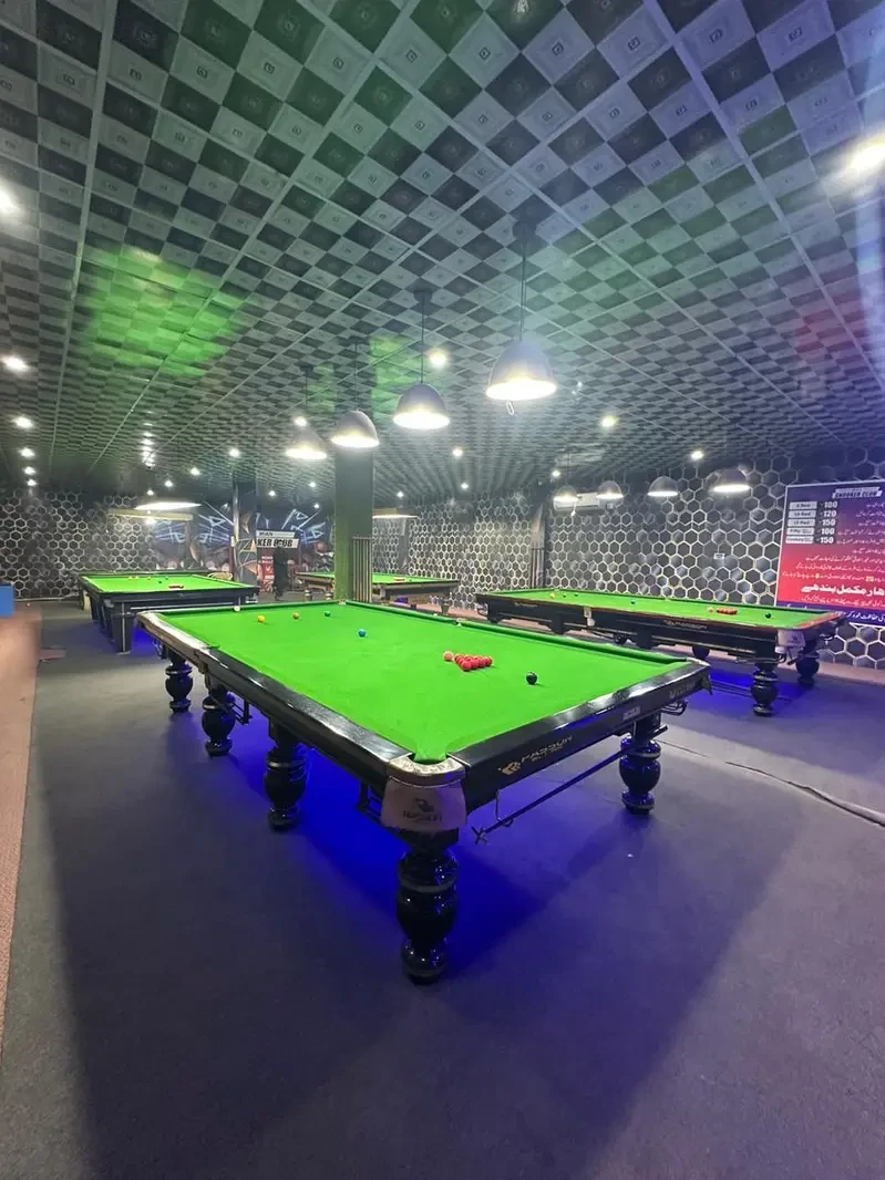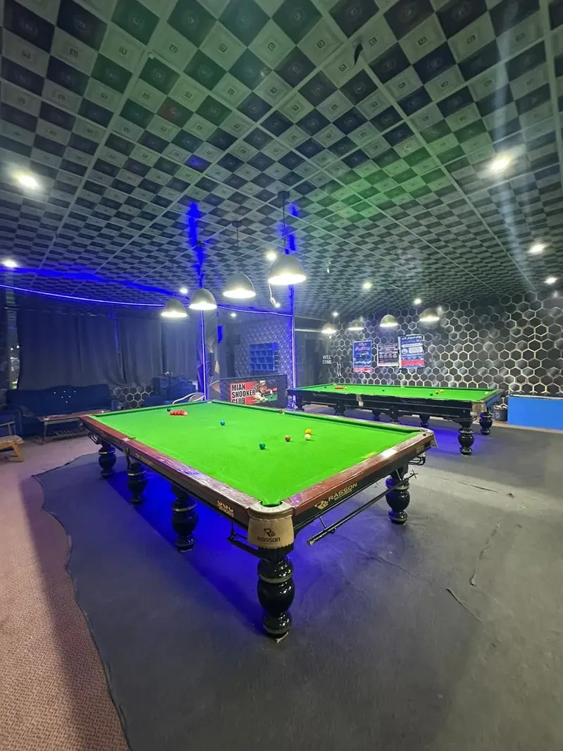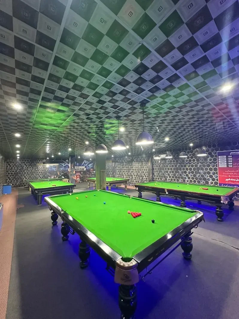 A fully equipped snooker club in Sambrial/Sialkot is available for sale, featuring multiple full-size tables, seating, lighting, cooling and gaming equipment — a ready-to-operate entertainment spot ideal for someone wanting to take over a cue-sports business with existing setup and customer interest.