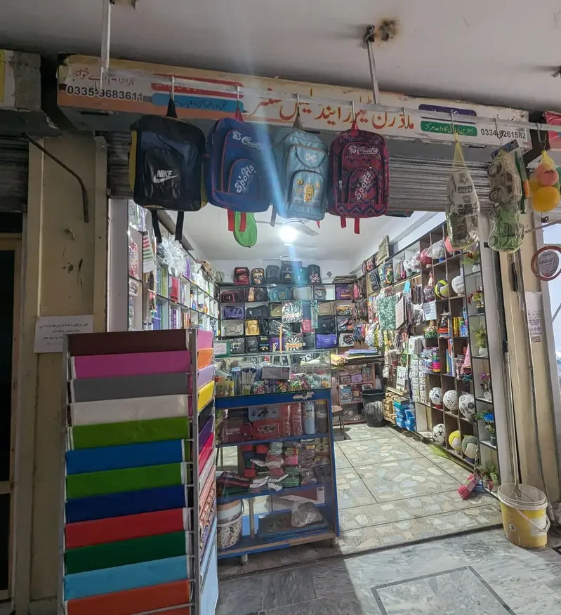 Stationery shop for sale in Royal Avenue, Islamabad, offering a stocked assortment of items including books, copies, gift products, bags and other stationery supplies.