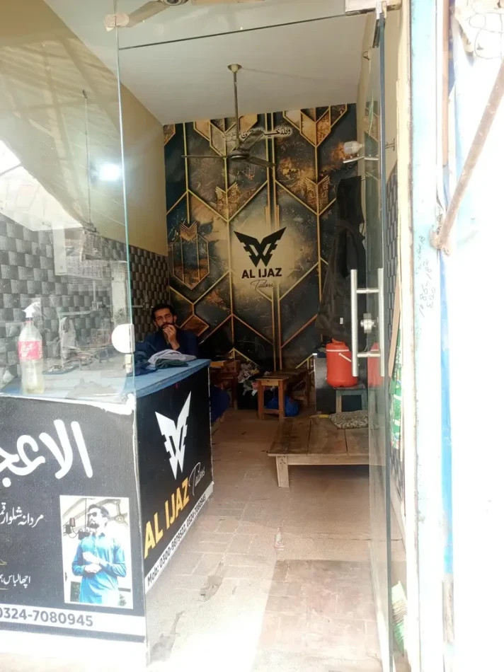 Tailor shop for sale in Purana Adda, Bahawalpur, equipped with sewing machines, counters, benches, fans and other basic fittings — presenting a ready-to-operate small tailoring business at an accessible price point, suitable for an experienced tailor or entrepreneur looking to expand into garment alteration and custom stitching services.