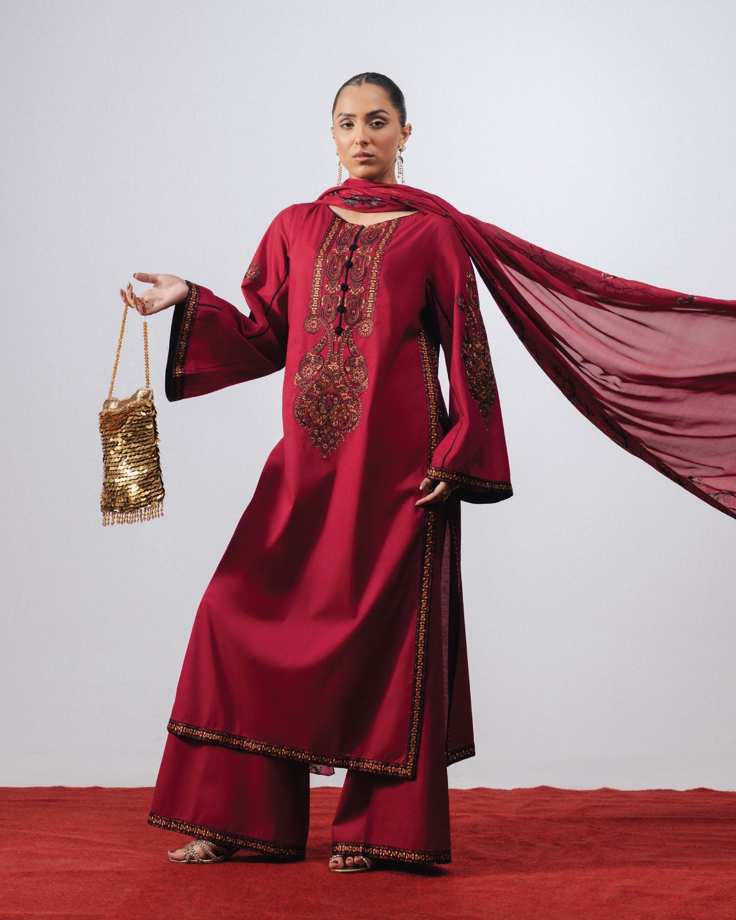 The brand operates primarily through a boutique and studio-based retail model, emphasizing a curated and exclusive shopping experience. Its collections are available at company-managed boutiques in Pakistan, particularly in Lahore, and are showcased online through the official Lajwanti website. This approach allows the brand to maintain control over product quality, presentation, and customer service, ensuring that each purchase reflects the luxury positioning of the label.