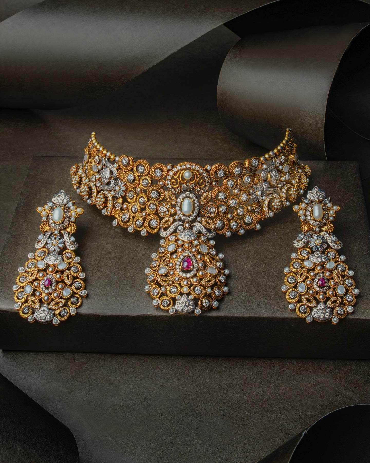 The brand is renowned for its luxury bridal sets, statement pieces, and traditional designs, blending Eastern artistry with contemporary flair to create elegant, timeless jewellery. Each piece is crafted with precision using gold, gemstones, polki, and rubies, reflecting a commitment to quality, detail, and sophistication.