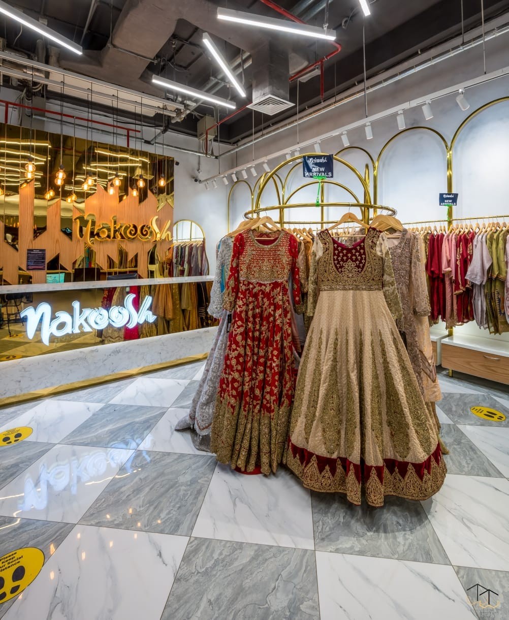 The brand operates through a hybrid retail model, combining company-owned boutiques in major cities—including Karachi, Lahore, Islamabad, Hyderabad, and Sialkot—with a robust online store offering nationwide delivery. This approach allows Nakoosh to maintain control over product quality and customer experience while expanding its reach to a broader market. The boutiques are located in prime shopping areas such as Dolmen Mall Clifton (Karachi), Emporium Mall (Lahore), and Giga Mall (Islamabad), providing customers with hands-on experience of fabrics and designs before purchase.