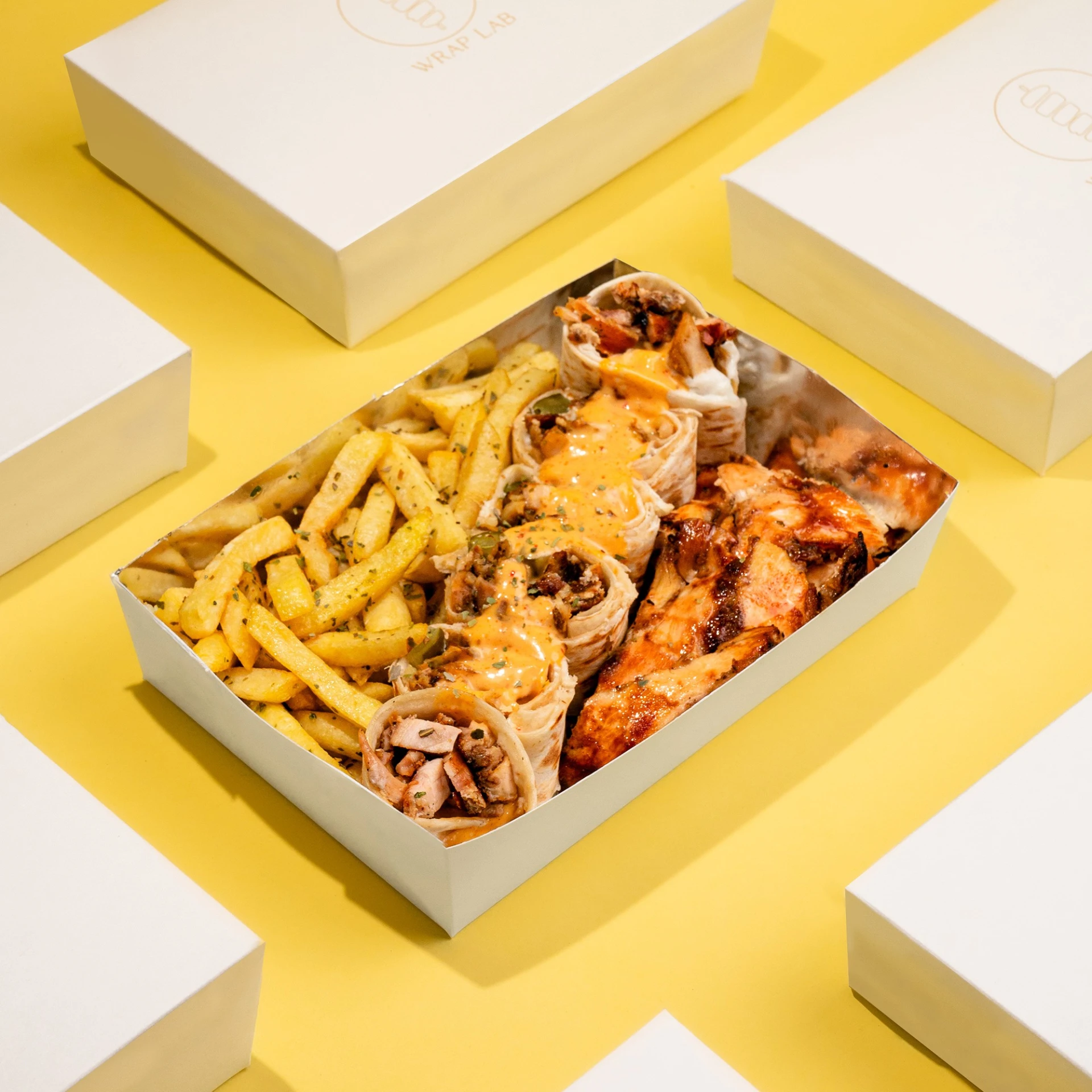 Wrap Lab specializes in made-to-order wraps and shawarmas, offering a variety of chicken and beef options paired with fresh vegetables, signature sauces, and bold seasonings. Customers can customize their meals according to taste, making it suitable for both light eaters and those looking for a filling, satisfying meal. The menu is designed for speed and consistency, making it ideal for takeaway, food courts, and casual dine-in settings.