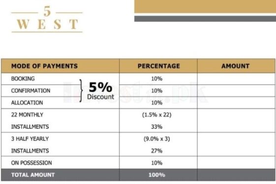 Developed with convenience and security in mind, the project features 24/7 security, energy-efficient electrical systems, high-speed elevators, and a secure entrance. Flexible payment plans make 5 West not only a perfect business location but also a smart investment opportunity.