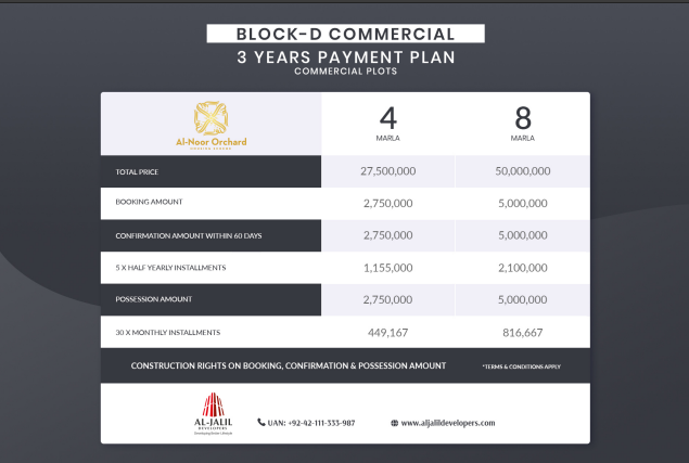 With its prime location, complete development, and strong developer reputation, Al-Noor Orchard Housing Scheme stands as an ideal choice for both homebuyers and investors seeking quality living and long-term value in Lahore.