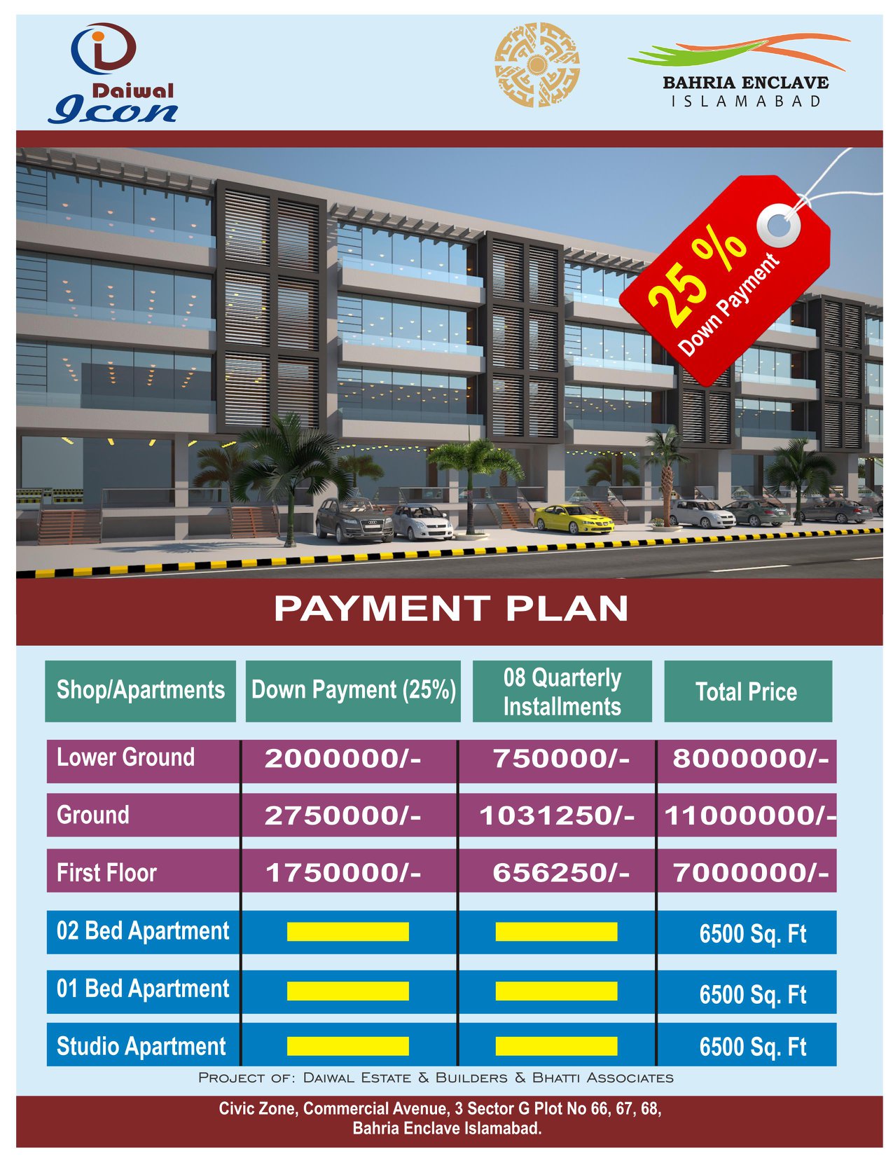 Diawal Icon is a premium residential and commercial development located within the prestigious Bahria Enclave Islamabad, offering a perfect blend of luxury, comfort, and modern urban living. Developed under the trusted name of Bahria Town, Asia’s largest private housing developer, the project reflects excellence, quality, and a global lifestyle standard.