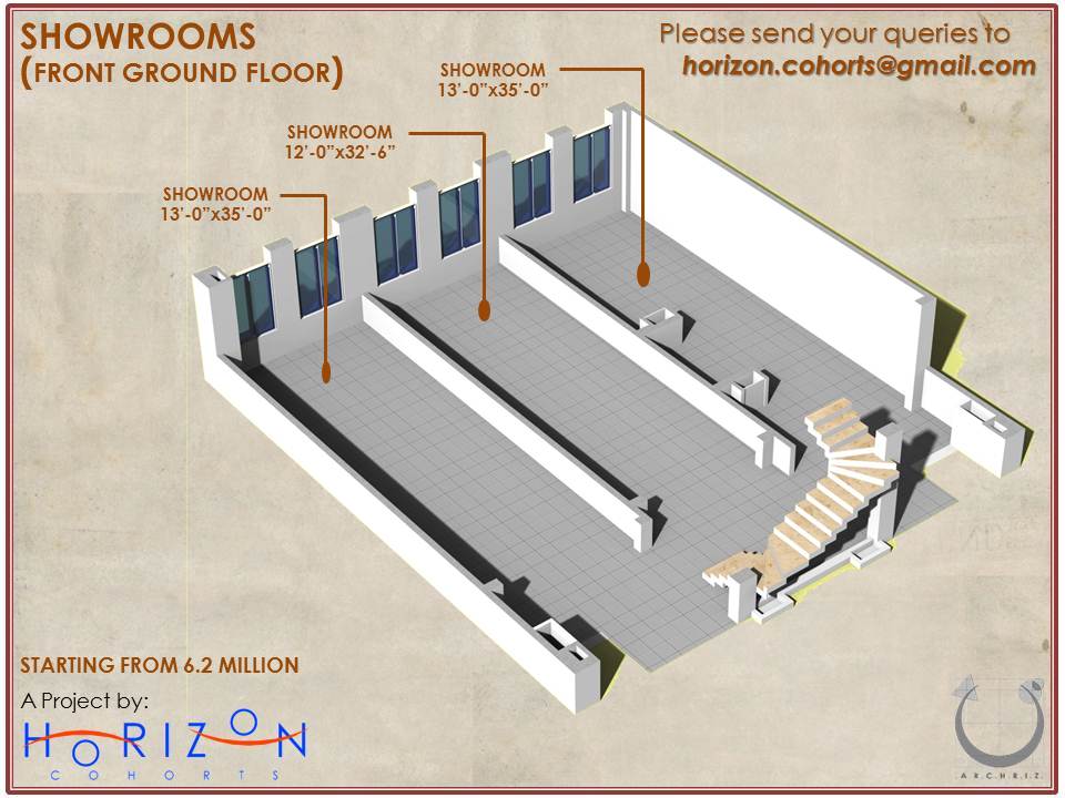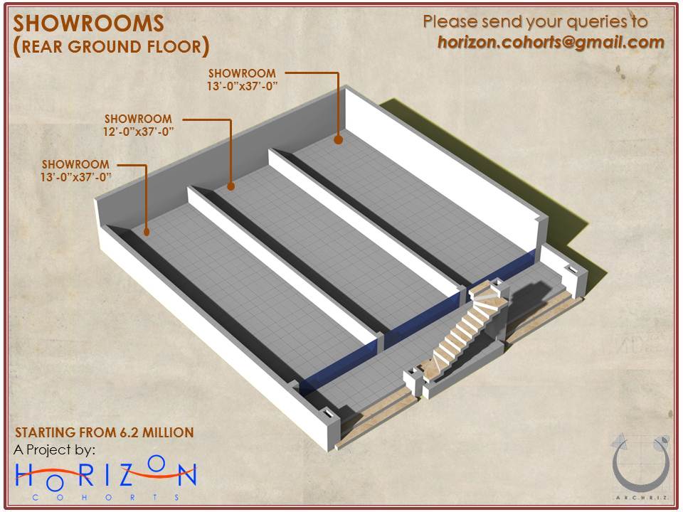 The commercial segment features stylish shops and showrooms finished with imported porcelain tiles in shops, corridors, and full glazed shop fronts using imported glass. Each shop enjoys maximum visibility with its front opening onto the main corridors, making it ideal for businesses.