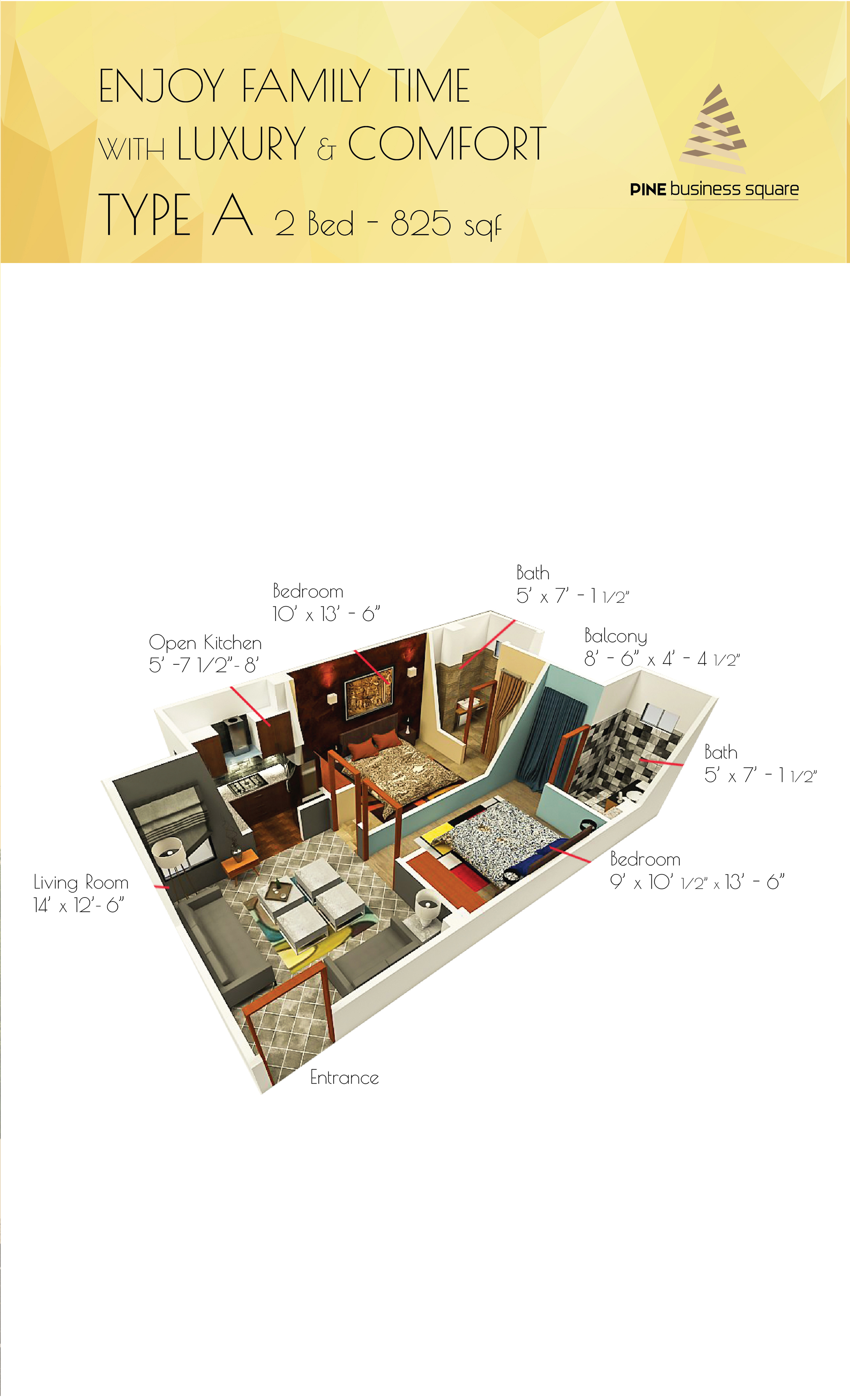 Designed as a smart building, Pine Business Square combines contemporary architecture with functionality. It offers designer apartments featuring airy rooms, open-to-sky concepts, private balconies, tailor-made kitchens, branded doors, and imported fittings. The project is Wi-Fi ready, secured with 24/7 surveillance, and provides spacious parking for residents and visitors.