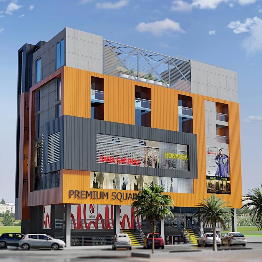 Strategically located, Premium Square is just approximately one mile from Airport Chowk, placing it at the heart of connectivity between Islamabad and Rawalpindi. Its unique two-side open structure allows for a massive parking facility, a rare and highly desirable feature in commercial developments.