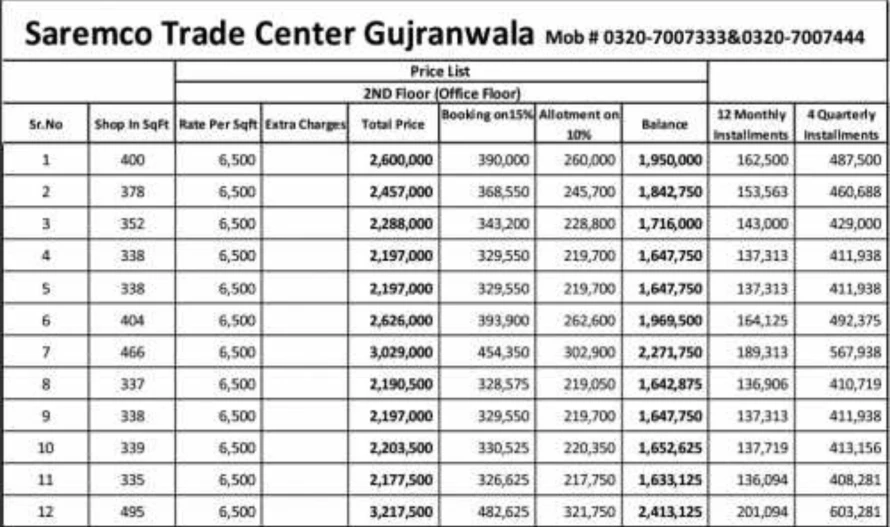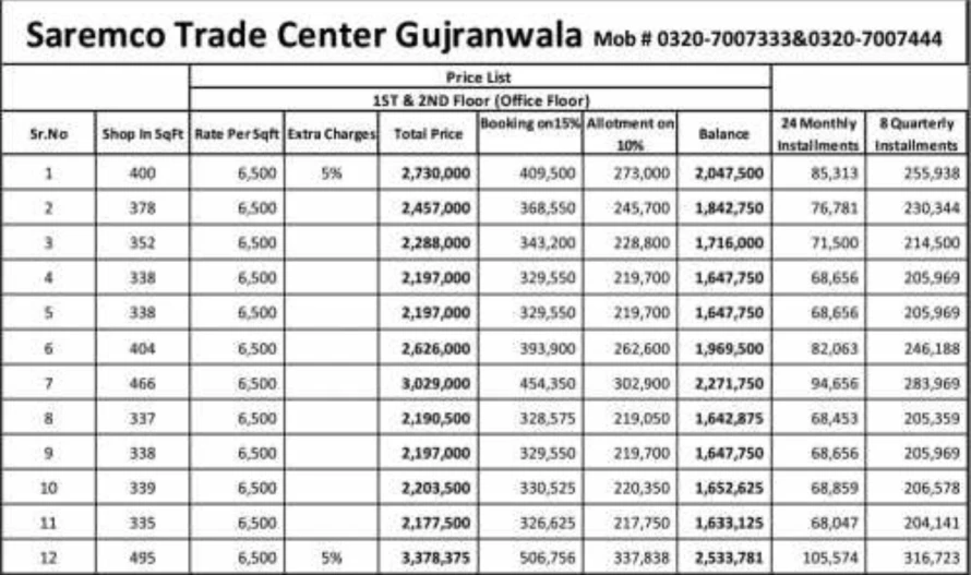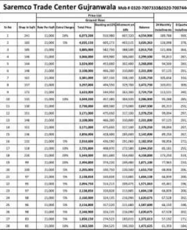 SAREMCO Trade Center is a prestigious commercial project designed to transform the business and retail experience in Gujranwala. With its prime location, stunning architecture, and world-class amenities, it is the perfect hub for entrepreneurs, retailers, and investors.