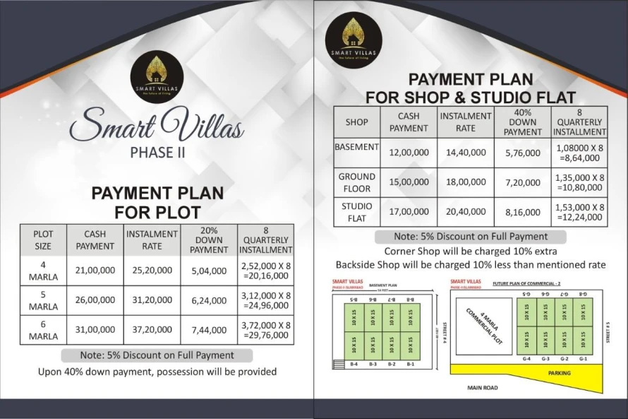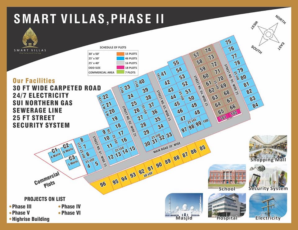 Planned across three phases, Smart Villas promises modern living through eco-smart homes, with Phase-1 offering 5-marla (25×50) plots and villas 70% of its development already completed. Model villas are under construction, while land for Phase-2 and Phase-3 has been fully acquired, ensuring smooth future development.