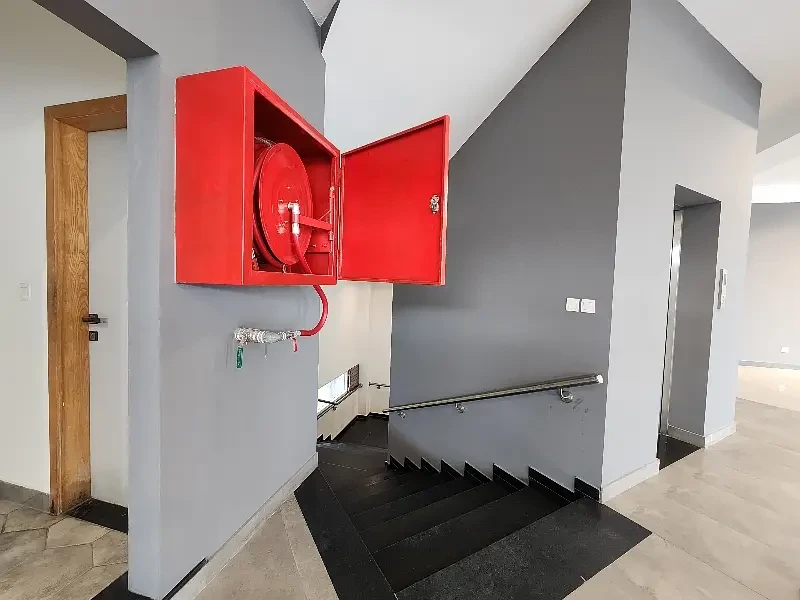 The building features AC, a passenger elevator, generator backup, fire safety system, tile flooring, fancy lighting, and a large parking area. Rent demand: Rs 1,500,000 per month.