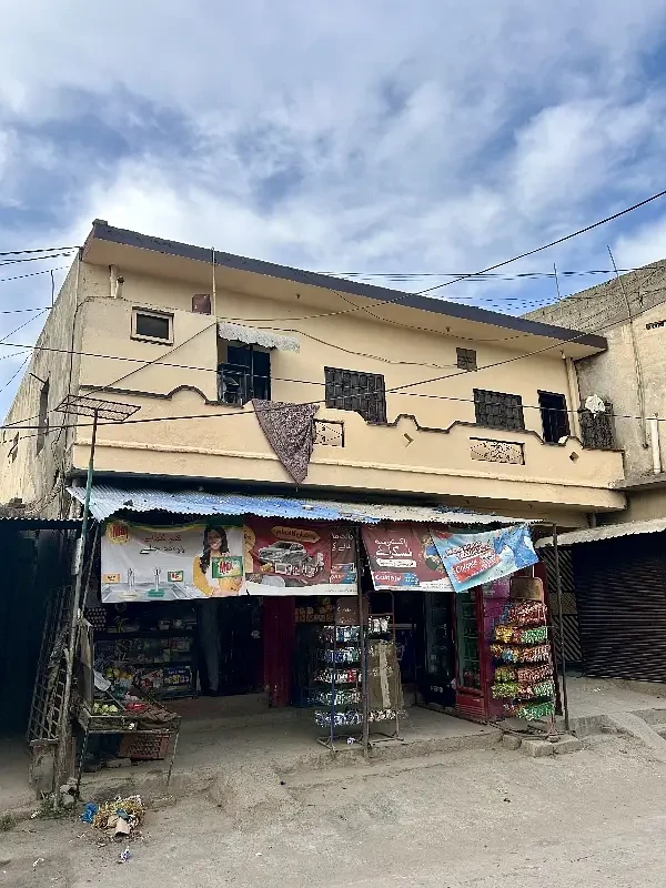 On the ground floor, there is a mobile shop and a grocery shop, while the first floor features four bedrooms with attached bathrooms, making it ideal for rental income.