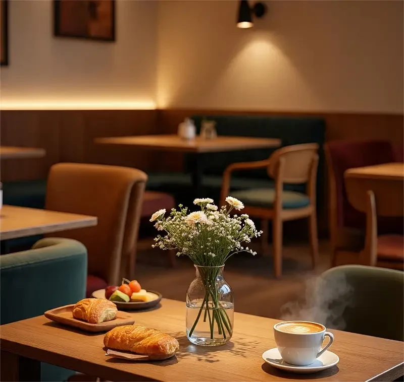 This café comes fully furnished, including tables, chairs, a counter, reception area, storeroom, and a fully equipped kitchen. It has an independent entrance, a newly designed sitting area, and a spacious rooftop open dining space perfect for casual or fine dining.