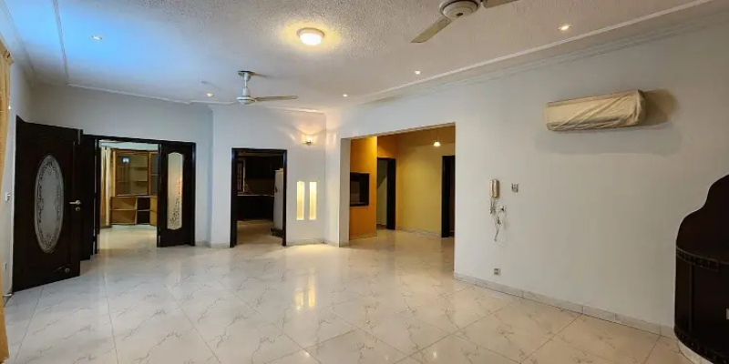 It features tile flooring, air conditioning, a geyser, 27 kVA generator backup, 3 servant quarters, and ample parking space. Rent demand is PKR 650,000 per month.