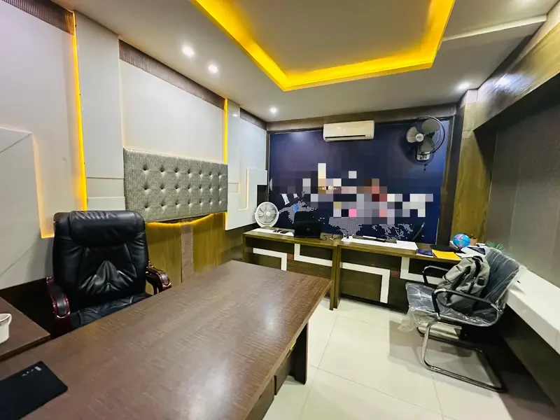 The office layout includes a large executive office, manager room, meeting room, prayer area with rest room, reception and waiting area, center hall, employee workstation space, two washrooms, a kitchen, and a storeroom. Designed for functionality and comfort, this space offers both aesthetic appeal and lasting value for investors.
