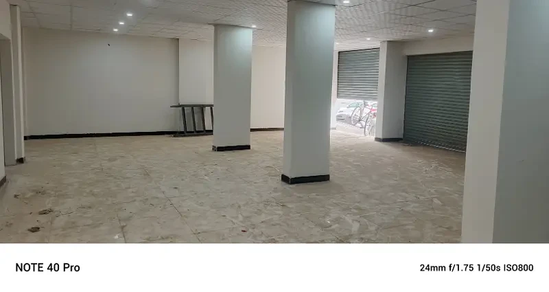 The space includes one washroom and a kitchen, ensuring convenience for staff and visitors. The open hall layout allows for easy customization according to business requirements, whether you need an open workspace, display area, or customer reception setup.