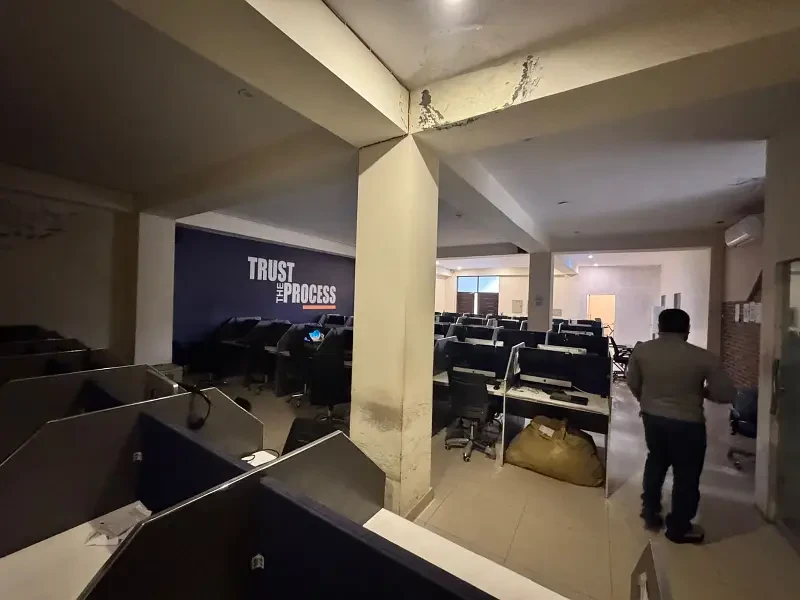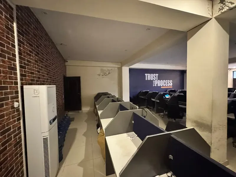 A brand new 1 Kanal floor is available, ideal for software houses or corporate offices. It features a 75-person seating area, CEO room, meeting room, HR room, and three bathrooms.