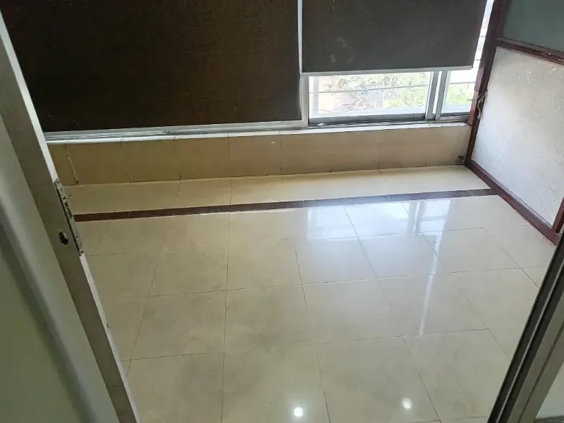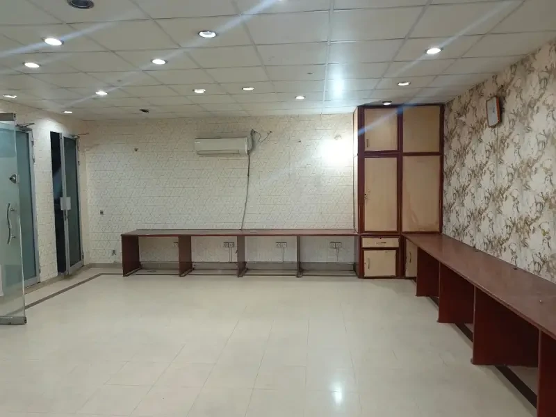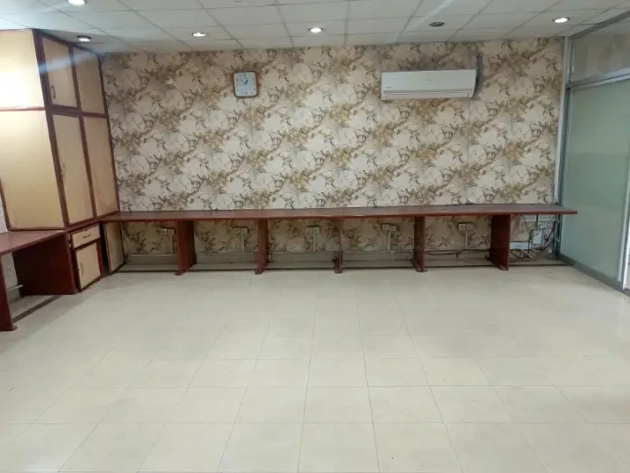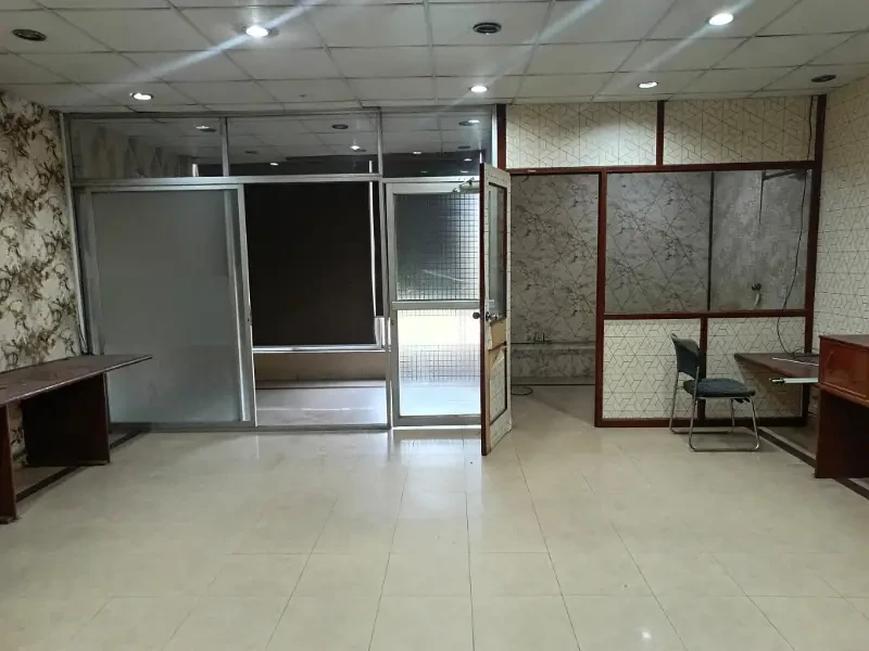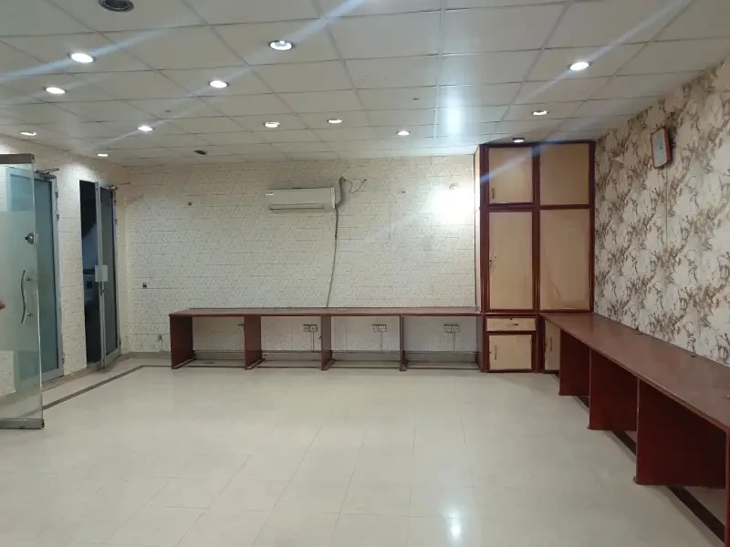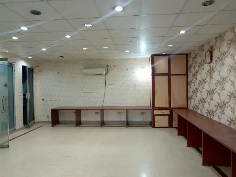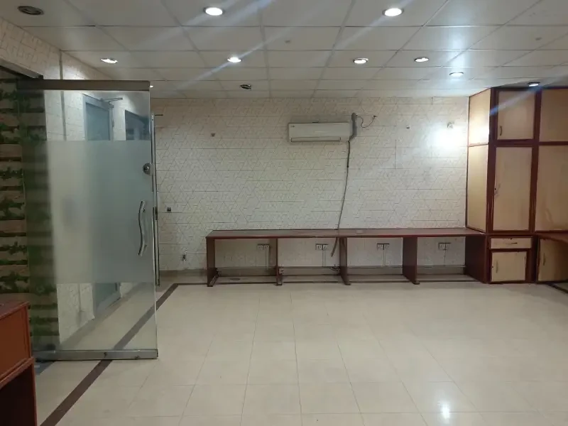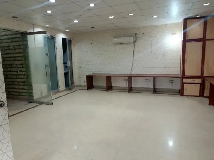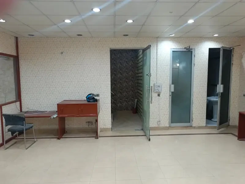A 4 Marla second-floor office is available for rent in Block H, DHA Phase 1. It includes two cabins, one hall, one bathroom, and a kitchen with clean tile flooring.